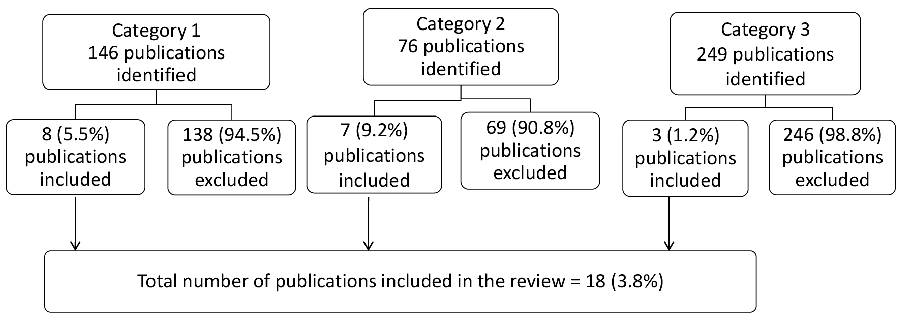 No software was employed for the search; however the references of all the resulting publications were hand searched for additional studies and information relevant to the review. Publications that did not completely fulfill the study inclusion criteria but adjudged by the authors to contain vital information necessary for narrative aspect of the review were selected and used accordingly. The principal author performed independent data extraction using the predetermined review criteria while two other authors validated extracted data. Authors were satisfied with amount and quality of available information from selected publications and needed not to contact their respective authors/investigators for data confirmation or additional information. All the publications in the three categories were subjected to the following study inclusion criteria: