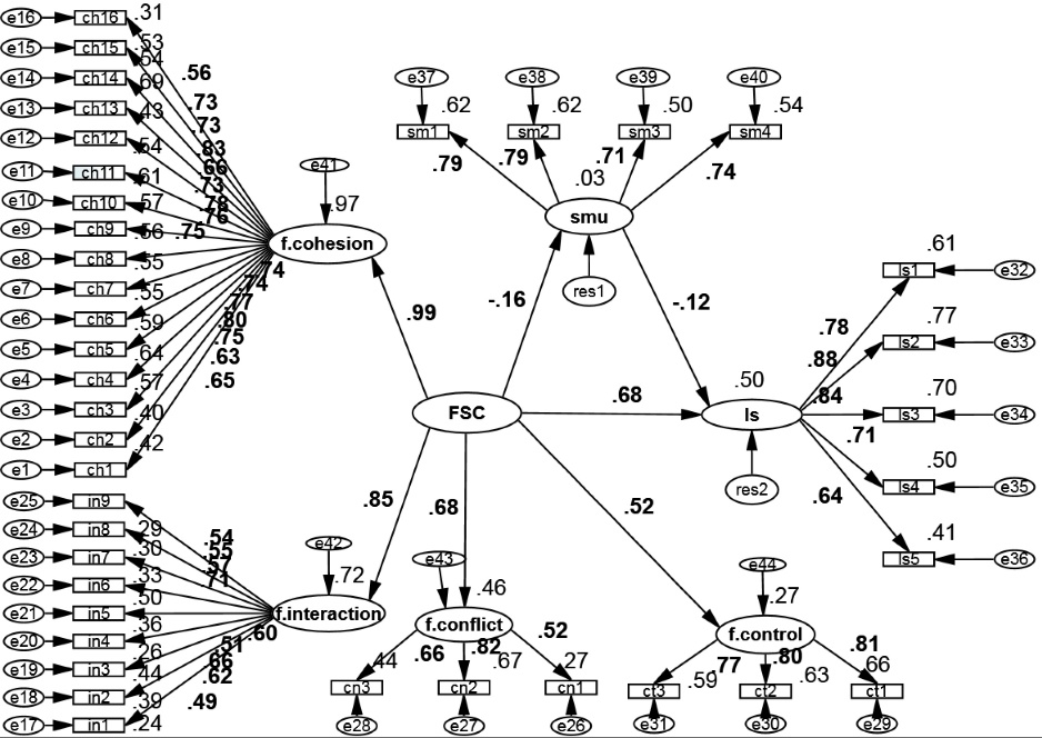 Abbreviations: LS= life satisfaction, FSC= family social capital, SMU= social media use.