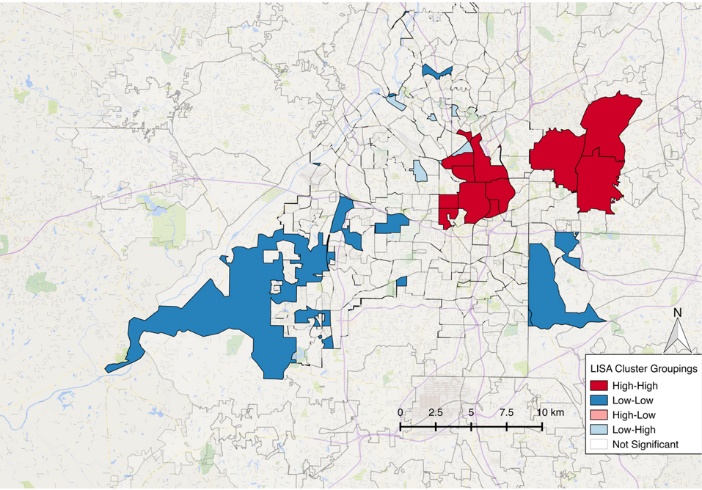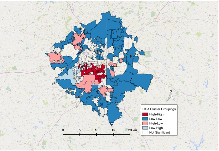 Figure 1. Social capital LISA analysis showing clustering pattern across the Atlanta region.