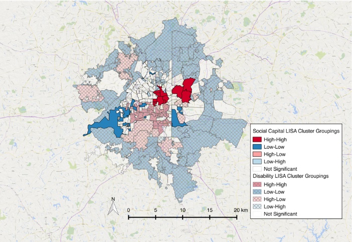Figure 3. Overlay of social capital and disability clusters in Atlanta.