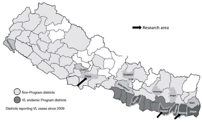 - Pandey BD, Pun SB, Kaneko O, Pandey K, Hirayama K. Expansion of visceral leishmaniasis to the western hilly part of Nepal. Am J Trop Med Hyg 2011;84(1):107-8. doi: 10.4269/ajtmh.2011.10-0291. [Crossref]