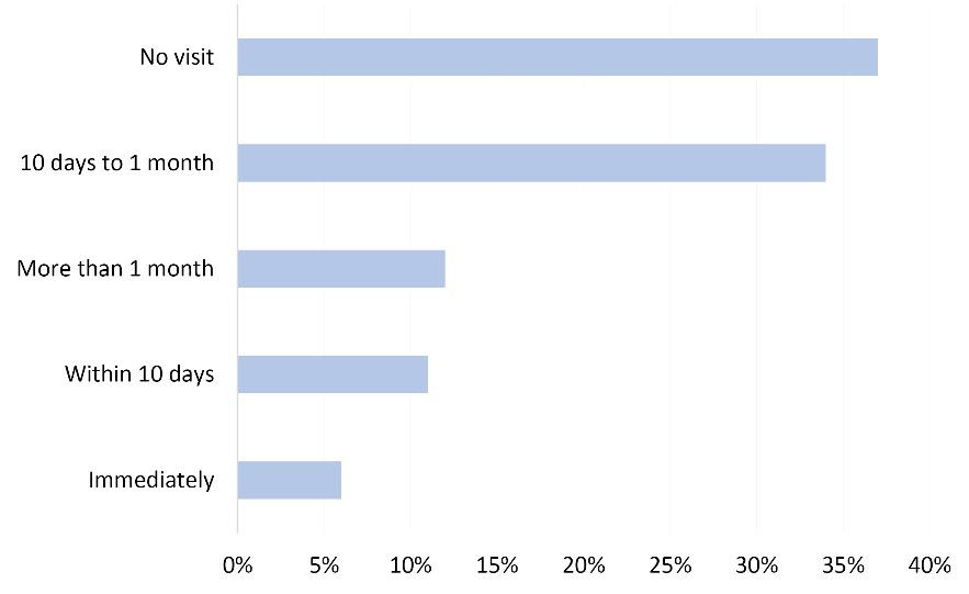 Delay in days of receiving a visit from the district office after reporting a VL case (n=18).
